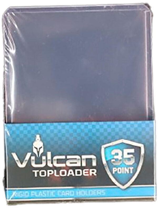 The Vulcan 35 Point Toploader pack of 25 is an essential product for any collector looking to protect their valuable trading cards. These high-quality toploaders are designed to fit standard-sized trading cards, offering superior protection against damage from bending, scratching, and environmental elements. Made from durable, rigid plastic, each top loader is 35-point in thickness, providing a sturdy barrier that ensures the cards remain in mint condition for long periods. The pack contains 25 individual toploaders, making it a cost-effective choice for those looking to store multiple cards securely. The transparent design allows for easy viewing of the cards inside, while still offering the necessary protection from dust and moisture. Whether you’re a collector of sports cards, Pokémon cards, or other collectible trading cards, these toploaders are an excellent way to keep your collection organized and in pristine condition. The Vulcan brand is known for its commitment to quality, and these toploaders live up to that reputation by offering a high level of clarity and protection. For collectors who value preservation, the Vulcan 35 Point Trading Card Toploader Pack is an indispensable tool in maintaining the value and integrity of their trading cards.