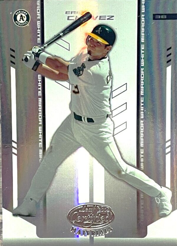 The 2004 Leaf Certified Materials Eric Chavez #58 card captures the talented third baseman during his peak years with the Oakland Athletics. Known for his Gold Glove defense and steady bat, Chavez was a cornerstone of the A’s lineup in the early 2000s. His ability to hit for power while maintaining strong defensive play made him a fan favorite and a key part of Oakland’s success during that era.