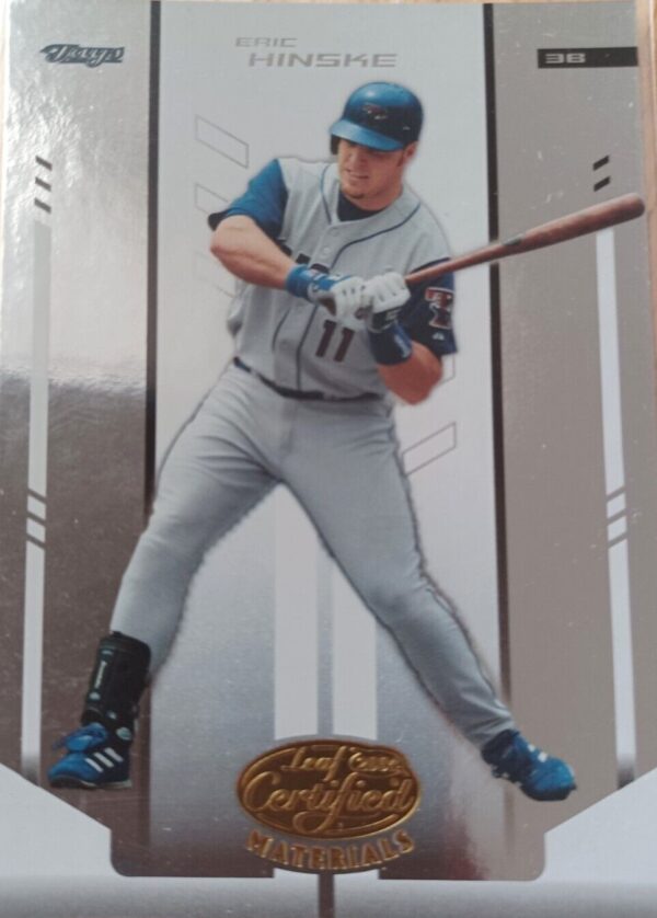 The Leaf Certified Materials series is well-known for its premium quality, sleek foil finish, and bold design, making it a standout for collectors. This card showcases Hinske in his prime with the Blue Jays, capturing an exciting chapter of his career.