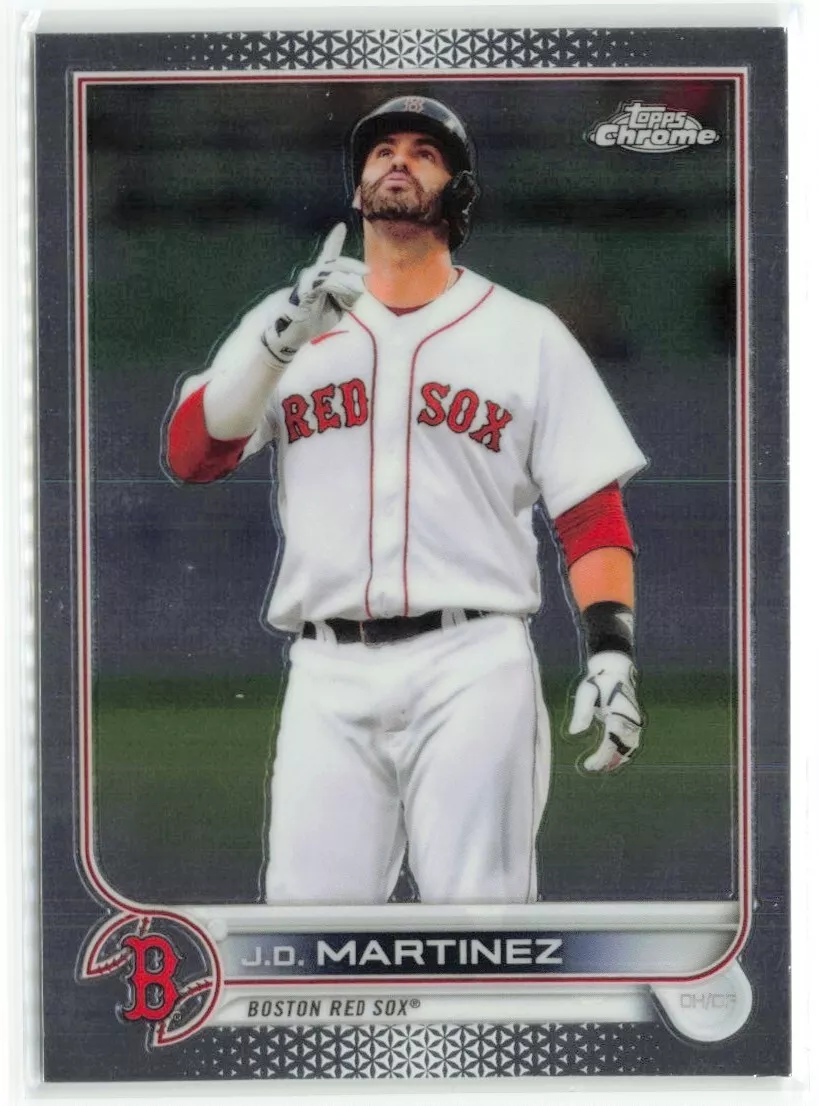 The 2022 Topps Chrome J.D. Martinez card stands as a testament to one of Major League Baseball’s most consistent and prolific hitters. J.D. Martinez, a key player for the Boston Red Sox, has made a name for himself with his remarkable ability to drive in runs, hit for power, and maintain a high level of consistency at the plate. Known for his smooth swing and keen batting eye, Martinez has been a cornerstone of the Red Sox’s offense since joining the team in 2018. His presence in the 2022 Topps Chrome set highlights his significance to the franchise and the sport, capturing the slugger in an action-packed moment that resonates with collectors and fans alike. The 2022 Topps Chrome card, with its sleek and glossy finish, perfectly complements his role as one of the premier hitters in MLB.