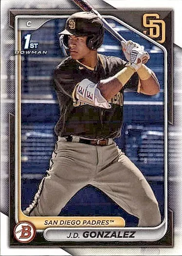 The 2024 Bowman J.D. Gonzalez card stands as a testament to one of Major League Baseball’s most consistent and prolific hitters. J.D. Gonzalez, a key player for the San Diego Padres, has made a name for himself with his remarkable ability to drive in runs, hit for power, and maintain a high level of consistency at the plate. Known for his smooth swing and keen batting eye, Gonzalez has been a cornerstone of the Padres offense since joining the team in 2023. His presence in the 2024 Bowman set highlights his significance to the franchise and the sport, capturing the slugger in an action-packed moment that resonates with collectors and fans alike. The 2024 Bowman card perfectly complements his role as one of the premier hitters in MLB.