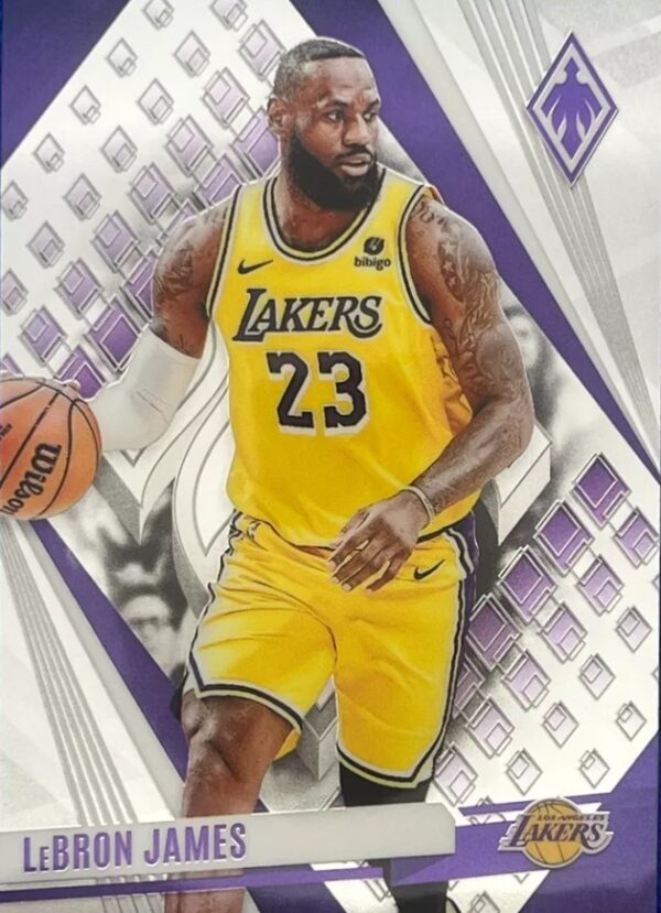 The 2023-24 Panini Phoenix LeBron James Card #211 is not only visually impressive, but it also holds substantial value for basketball card collectors. As a cornerstone of the Lakers’ success in the modern NBA, LeBron’s presence on this card further solidifies its importance in any collection. The Phoenix set is known for featuring some of the top players in the league, and LeBron James is certainly a marquee figure whose name resonates with fans around the world. The card captures a key moment in his career, whether it’s his leadership in the 2023 season or his continued pursuit of NBA championships, making it a must-have for any serious collector. The Panini Phoenix set’s reputation for quality and detail is on full display here, ensuring that this LeBron James card is not just a collectible but a highly sought-after item for both fans and investors.