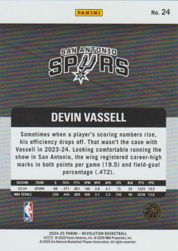 Since entering the league, Vassell has shown consistent growth, becoming a reliable scorer and lockdown defender for the Spurs. His breakout performances and leadership qualities have made him an integral part of San Antonio’s young core alongside Victor Wembanyama. For collectors, this card represents excellent value for Spurs fans, Florida State alumni, and those tracking rising stars in the Western Conference. Vassell’s potential for continued improvement makes this card appealing to both team collectors and those seeking undervalued young talent.