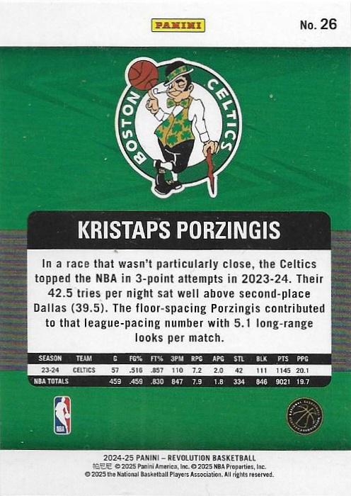 After successful stints with the Knicks, Dallas Mavericks, and Washington Wizards, Porzingis joined the Boston Celtics in 2023, adding another dynamic weapon to their championship aspirations. Throughout his career, he has averaged over 20 points per game multiple times and has been a consistent threat from beyond the arc for a player his size. For collectors, this card represents a key piece for Celtics team set builders and fans of international NBA stars. Porzingis cards have maintained steady interest due to his unique skill set and the intrigue surrounding big men who can shoot from deep range.