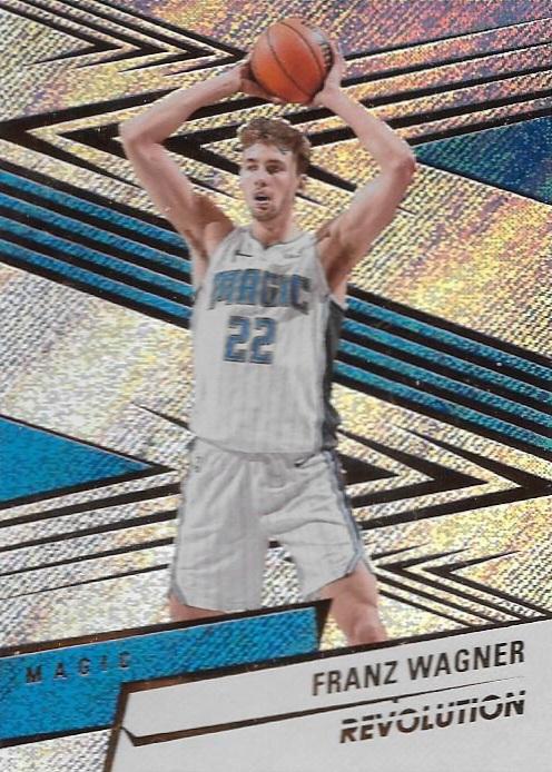 This 2024-25 Panini Revolution release features the brand’s signature modern design with bold colors and premium cardstock, capturing Wagner in action wearing his Magic jersey. The Revolution series continues to deliver visually appealing cards with strong collector appeal, making this base card a standout piece for any basketball card collection.