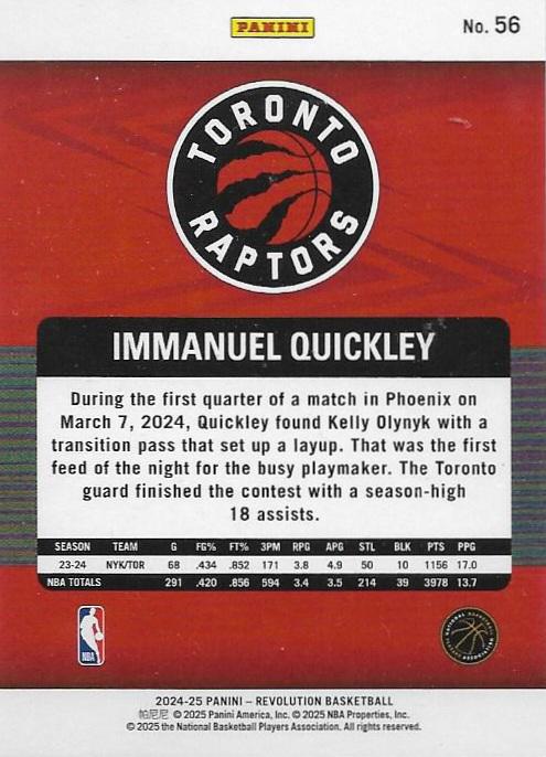 2024-25 Panini Revolution #56 – Immanuel Quickley (Toronto Raptors, PG)