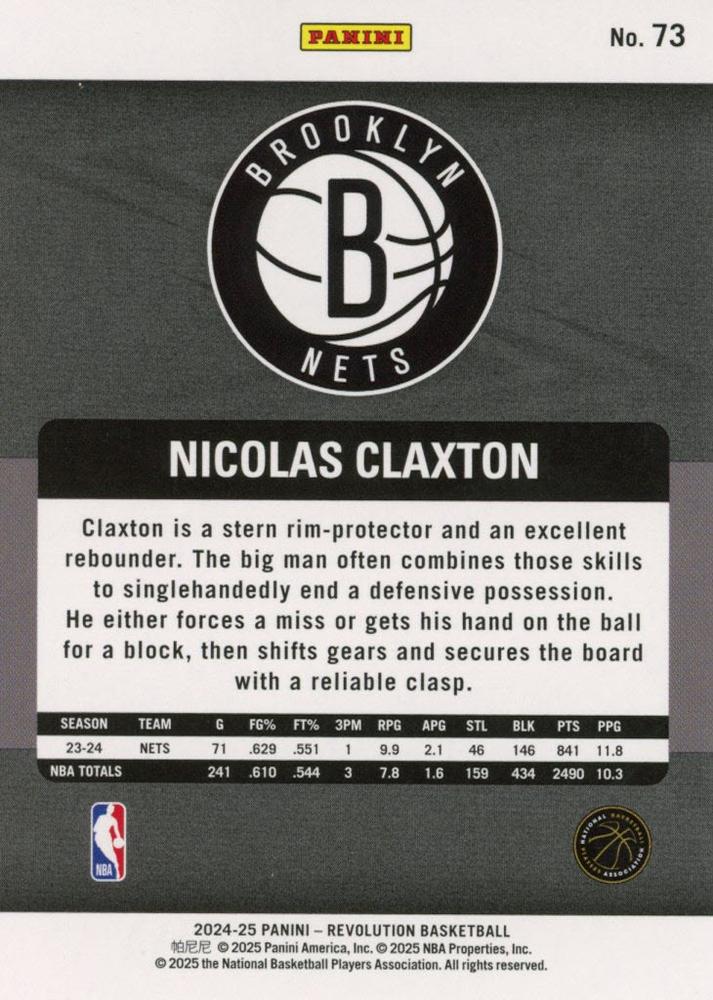 2024-25 Panini Revolution #73 – Nicolas Claxton (Brooklyn Nets, C)