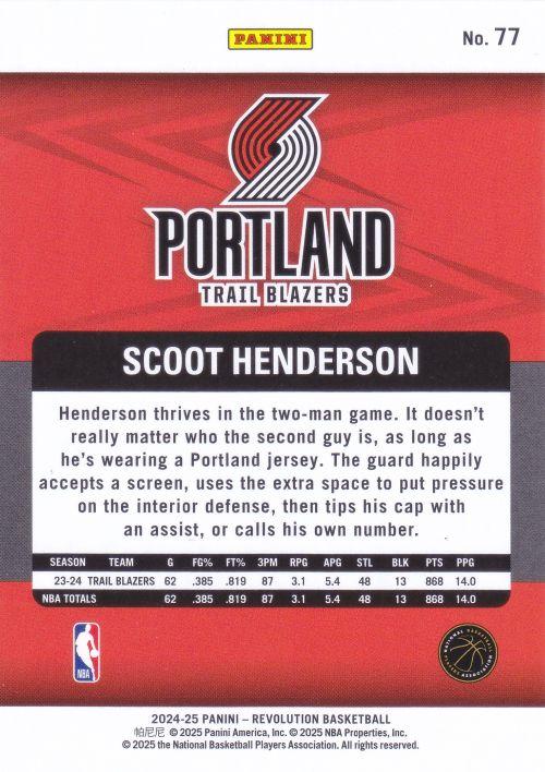 Revolution Basketball‘s signature prismatic foil design and vibrant technology make this Henderson card a standout addition to any collection. The set’s distinctive bright foil backgrounds and modern aesthetic perfectly capture the energy and excitement surrounding one of the NBA’s most promising young guards, creating a premium collectible that reflects Henderson’s dynamic playing style.