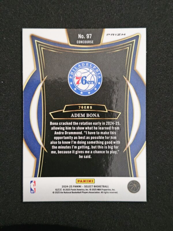 Bona‘s journey from Turkey to UCLA to the NBA highlights his international appeal and developmental trajectory as a second-round selection with significant upside. His shot-blocking prowess and defensive instincts made him a standout during his time with the Bruins, earning recognition as a potential steal in the draft’s second round. For collectors, this Silver parallel rookie card offers excellent value for 76ers team set builders, fans of international prospects, or those who appreciate collecting second-round picks with high ceiling potential. His unique background and defensive specialty also make this card appealing to collectors focused on international NBA talent and rookie cards from the 2024 draft class.