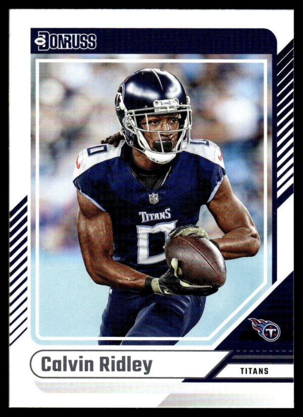 The 2024 Donruss #7 Calvin Ridley card highlights the dynamic wide receiver in an action-packed moment, showcasing his explosive speed and sharp route-running ability. After making a successful return to the NFL with the Tennessee Titans, Ridley is once again proving why he’s one of the league’s most dangerous wideouts. Known for his ability to stretch the field and make spectacular catches, this card perfectly captures Ridley’s playmaking ability, making it a must-have for collectors following his exciting career resurgence.