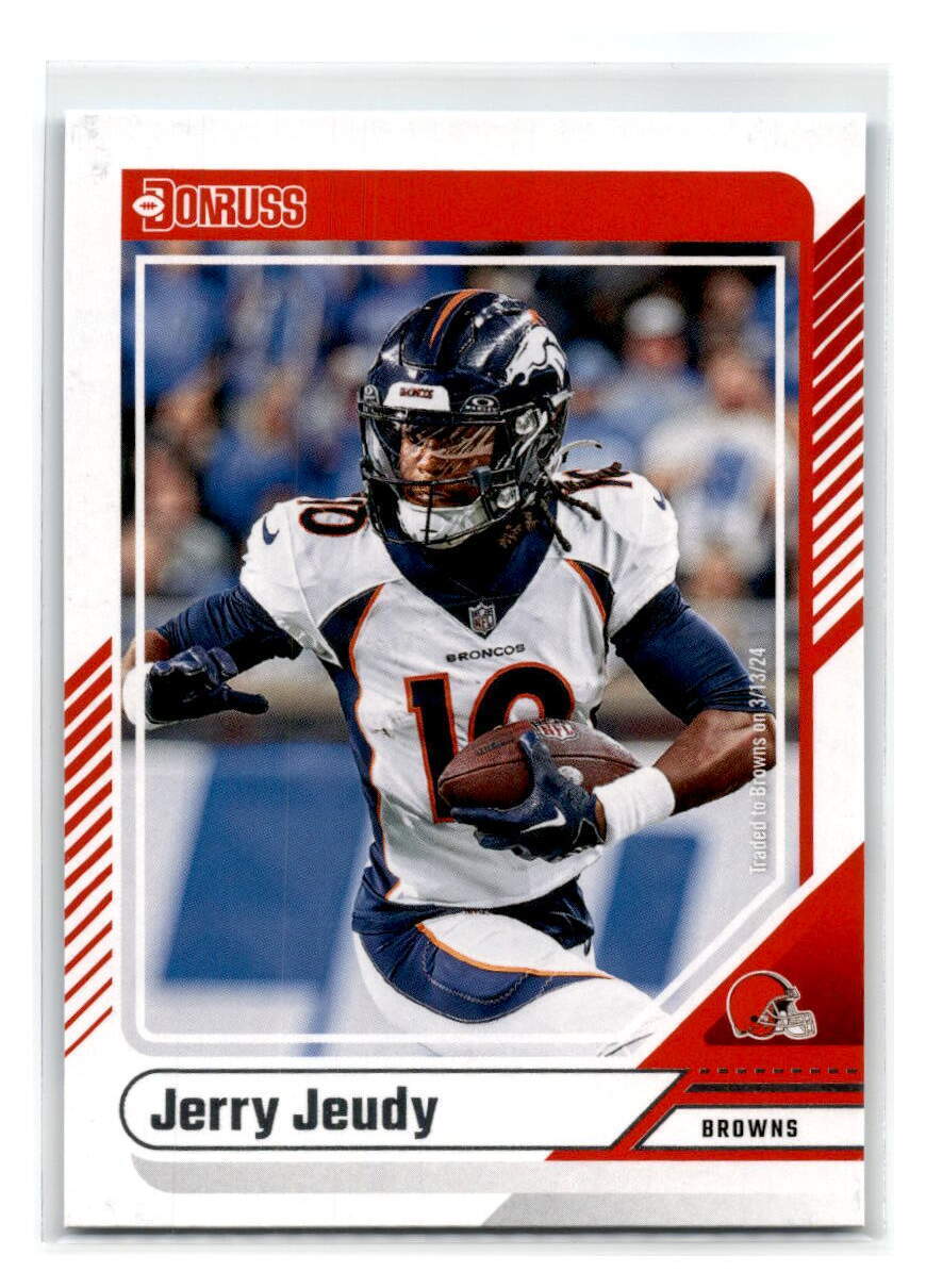 The 2024 Donruss #3 Jerry Jeudy card captures the dynamic wide receiver in action, showcasing his speed, agility, and playmaking ability. As one of the top targets for the Cleveland Browns, Jeudy is known for his sharp route-running and ability to make big plays. This card highlights his potential to be a key offensive weapon for years to come. With its vibrant design and crisp details, the 2024 Donruss #3 card is a must-have for collectors following Jeudy’s exciting career trajectory.