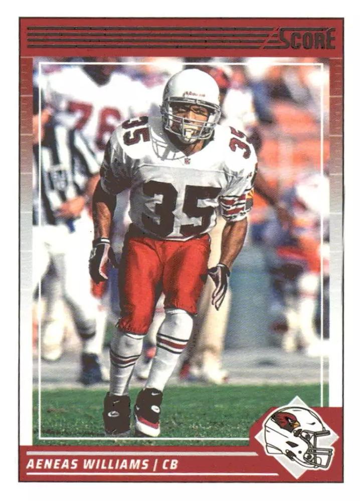The 2024 Score #9 Aeneas Williams card celebrates the legendary career of one of the NFL’s most accomplished cornerbacks, Aeneas Williams. Known for his exceptional ability to shut down receivers and make game-changing plays, Williams was a key defensive leader for the Arizona Cardinals throughout his career. His combination of athleticism, intelligence, and ball skills made him a force in the secondary, and this card captures the essence of his dominance on the field.