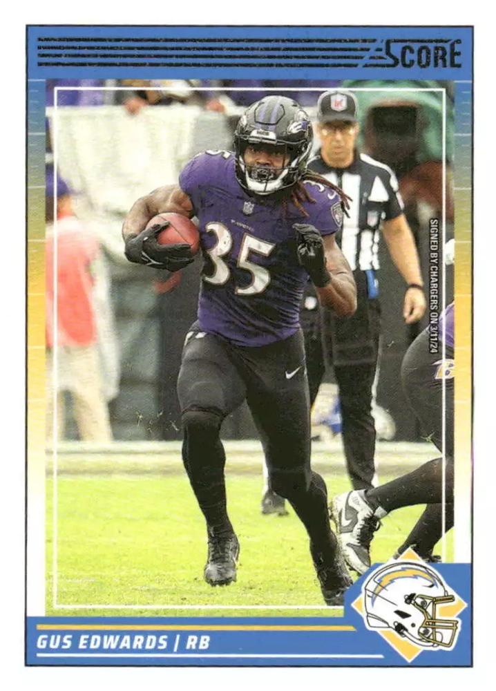Gus Edwards has quickly become a powerful and reliable force for the Los Angeles Chargers’ offense. Known for his punishing running style and ability to break tackles, Edwards has cemented himself as a key contributor in the Chargers’ backfield for the 2024 season. Standing at 6’1″ and weighing in at 238 pounds, Edwards combines impressive size with surprising speed, making him a difficult matchup for opposing defenses. His no-nonsense approach to running the ball allows him to grind out tough yards and control the tempo of the game, especially in short-yardage situations.