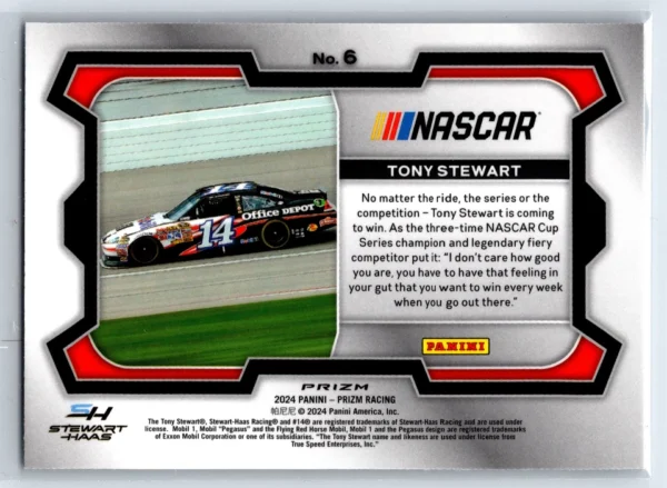 Chase a legend with the 2024 Panini Prizm #6 Tony Stewart Silver Prizm card,